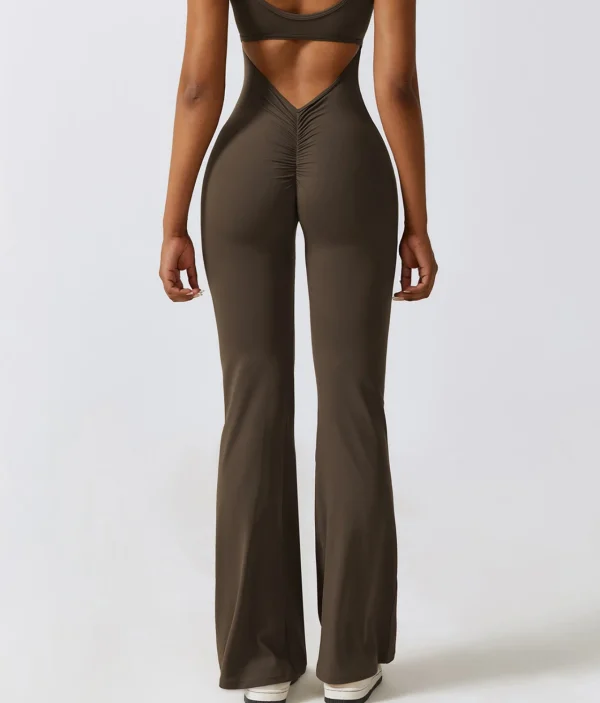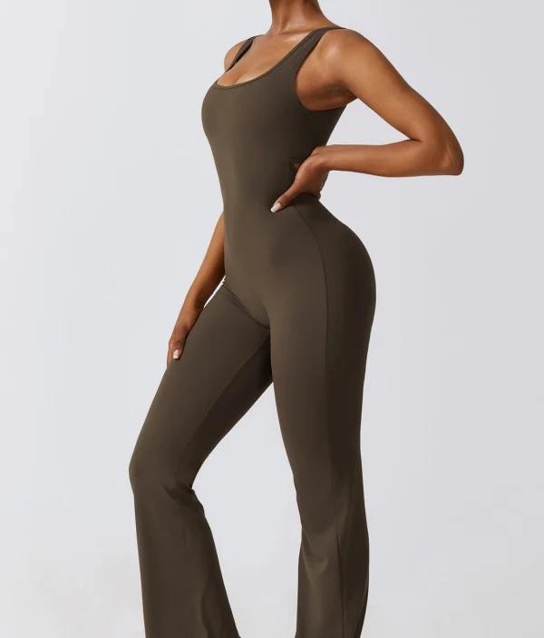 Debele bretele garantuju sigurnost i stabilnost, dok zvonasti donji deo daje elegantan, izdužen izgled koji kombinezoni pružaju u odnosu na klasične helanke. Anda kombinezon nije samo praktičan za treninge, već je idealan i za ležerne šetnje ili opuštene aktivnosti, nudeći vam osećaj samopouzdanja i stila gde god da se nađete.