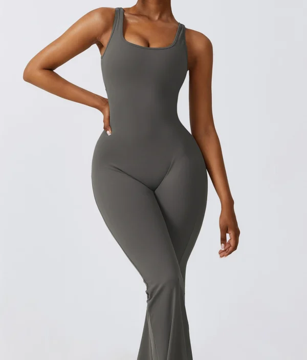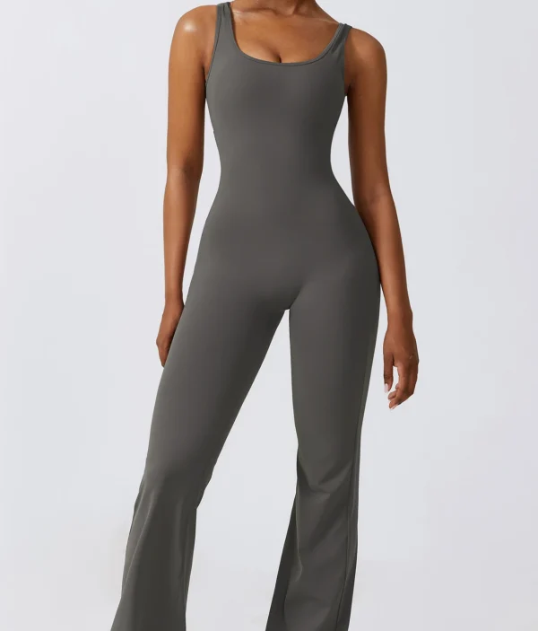 Debele bretele garantuju sigurnost i stabilnost, dok zvonasti donji deo daje elegantan, izdužen izgled koji kombinezoni pružaju u odnosu na klasične helanke. Anda kombinezon nije samo praktičan za treninge, već je idealan i za ležerne šetnje ili opuštene aktivnosti, nudeći vam osećaj samopouzdanja i stila gde god da se nađete.