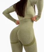 Komplet koji će izvajati vaše tijelo. Dubok pojas tajica će utegnuti vaš struk, a tajice će biti nepomične i za vrijeme najzahtevnijeg treninga. Materijal je elastičan što će vam pružiti potpunu slobodu pokreta. Tajice imaju push-up efekat koji savršeno oblikuje zadnjicu i noge, bez obzira da li se aktivno bavite sportom ili ne . Topić na dug rukav savršeno prijanja uz tijelo. Na rukavima se nalazi otvor za palac ,za dodatnu sigurnost i nepomičnost topa. Ovo je model koji obavezno morate posjedovati u vašem garderoberu, bez obzira da li ćete ga koristiti za trening ili za svakodnevne aktivnosti.