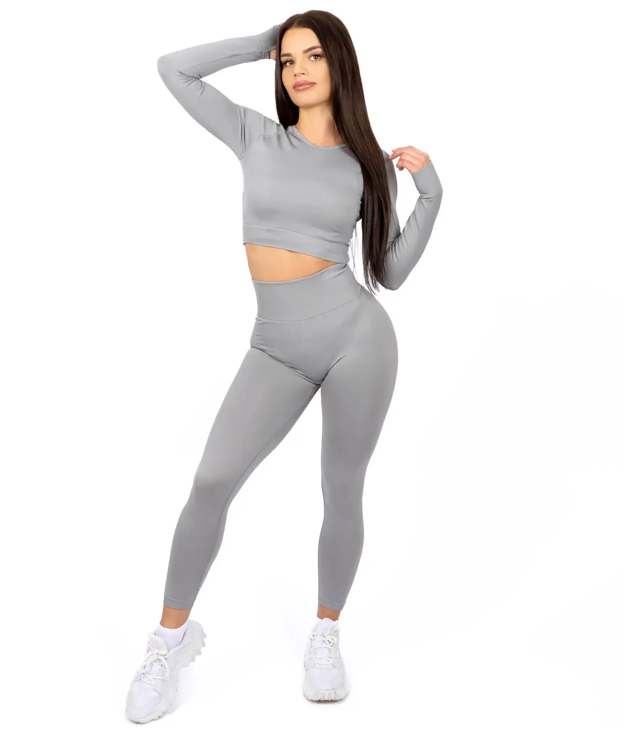 Selena gray komplet sa topom na dug rukav