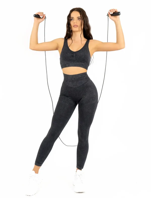 Komplet sa topom na duge rukave je pogodan za duže,laganije trčanje, jogu ili pilates, odnosno za onaj vid aktivnosti gdje je naglasak na sporijim pokretima. Zbog unikatnog kroja koji se savršeno prilagođava oblinama tijela, ovu kombinaciju možete nositi i van prostorija fitnes studija, na ležernom ručku ili dnevnom izlasku.